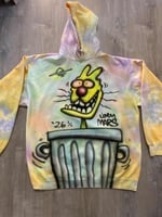 1/1 Hoodie: hand painted by Joey Mars with an airbrush on a Size 2XL Dyed Hoodie creating a vibrant one of a kind wearable art piece. Measuresments are 25x33. Machine-Wash and dry if desired. Painted with Createx fabric paint heat pressed to seal in paint.