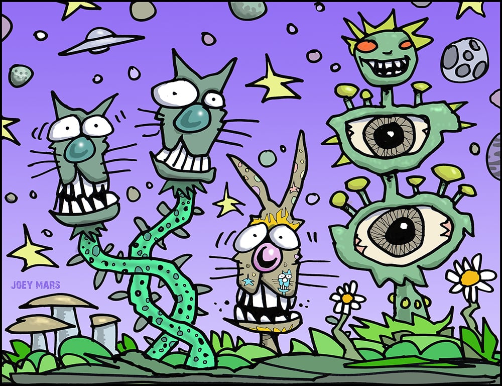 Joey Mars signed and numbered, limited (100 editions) print on paper. Evolution Revolution. Nature is conscious and communicating in this garden. Paper size is 16''x13'' printed with archival inks on premium 60lb matte paper. Shipped in a protective tube.