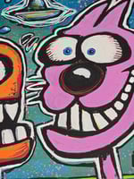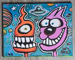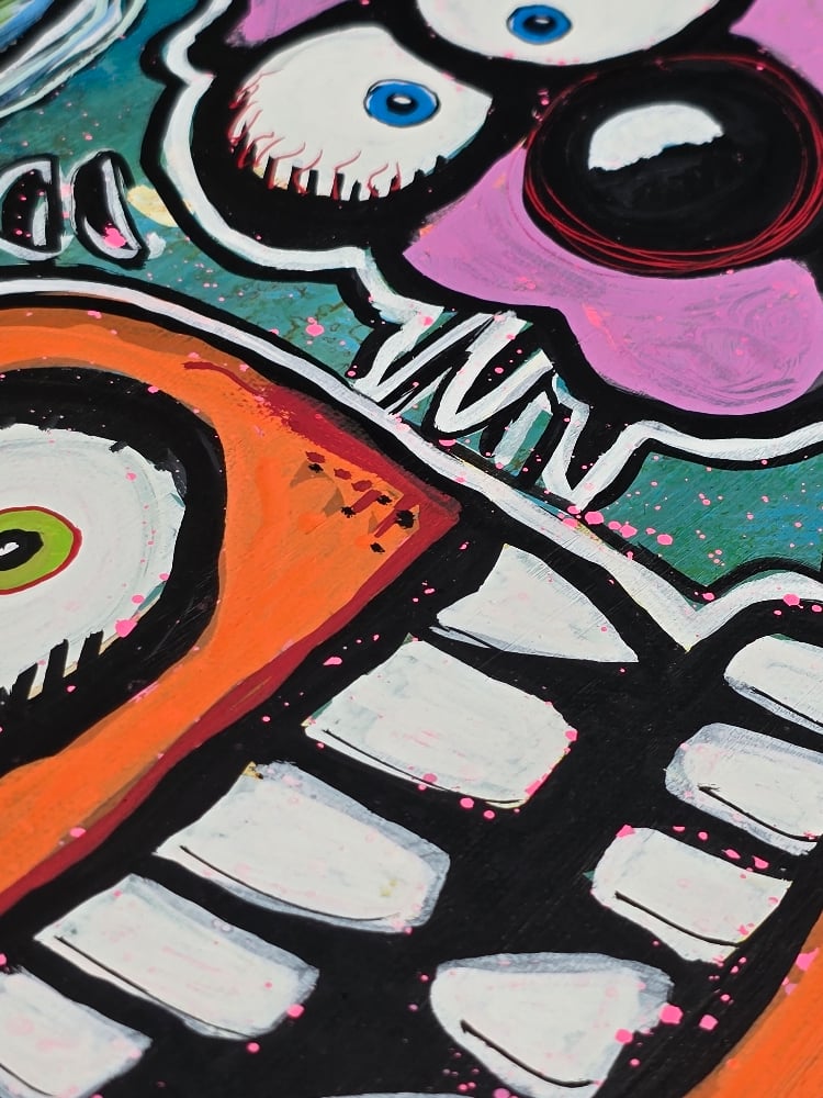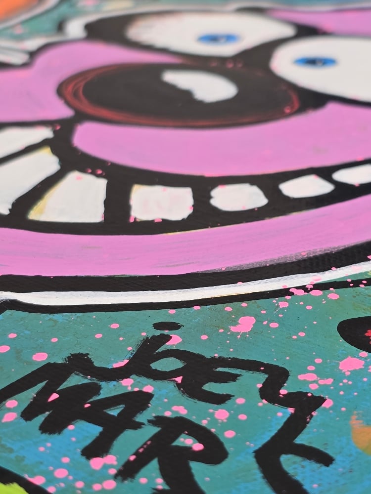 1/1 Original 11x14 Inch 2025 Joey Mars Painting. Acrylics on canvas. A lot of energy to this piece, Surreal Cosmic Splash ๐. Pink and orange off the blue-ish green background really pops โจ๏ธFree shipping within the continental U.S.