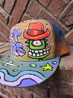 1/1 Original Art. Acrylics on a flat brim snap back trucker hat. Waterproof and Weatherproof!