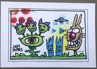 A limited edition, signed and numbered print by Joey Mars. First run limited to 50 prints. Depicts a garden scene with animated plants and animals sharing knowledge and wisdom. Printed with archival inks on 19x13 inch premium matte paper. Shipped in a protective tube.