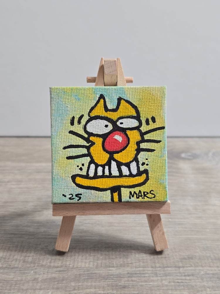 Original Art painted on canvas 2.5x2.5 Inches. Signed and dated, comes with easel.