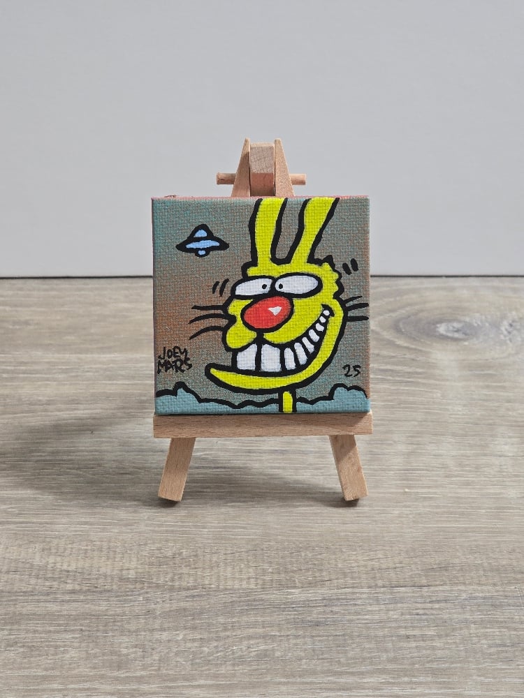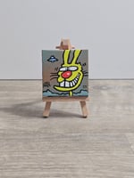 Original Art painted on canvas 2.5x2.5 Inches. Signed and dated. Comes with easel.