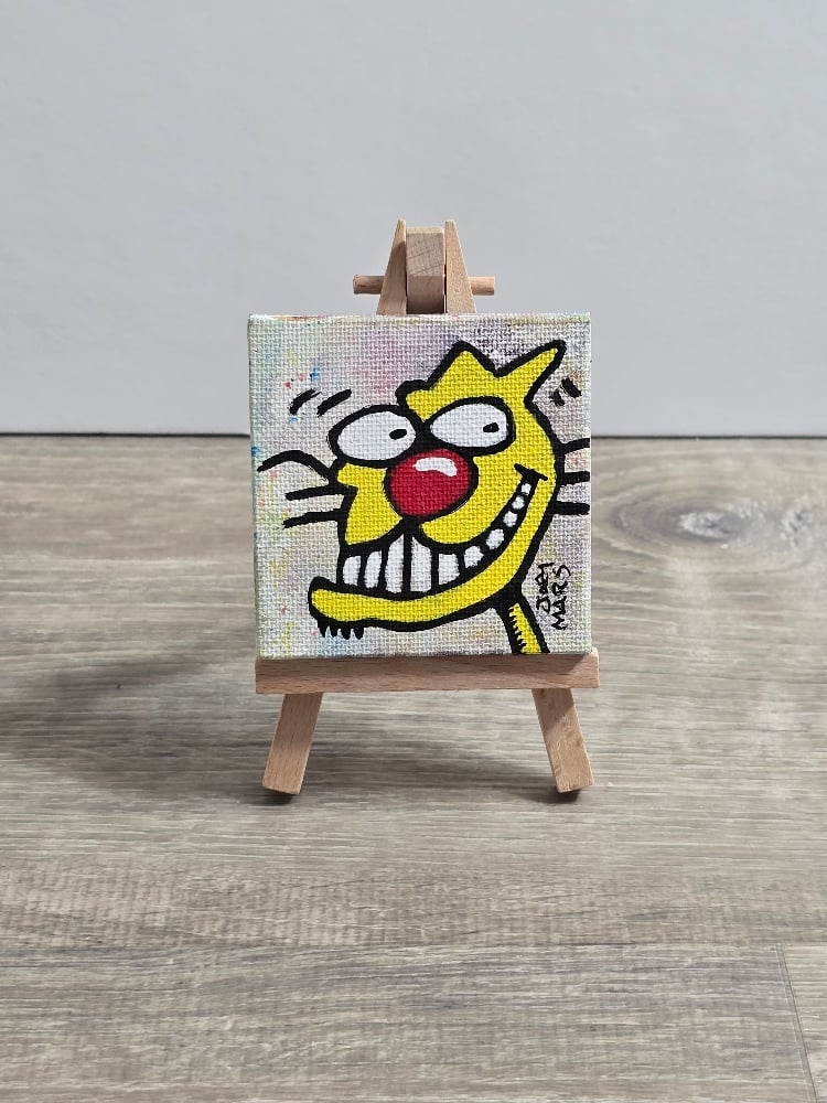 Original Art painted on canvas 2.5x2.5 Inches. Signed and dated. Comes with easel.