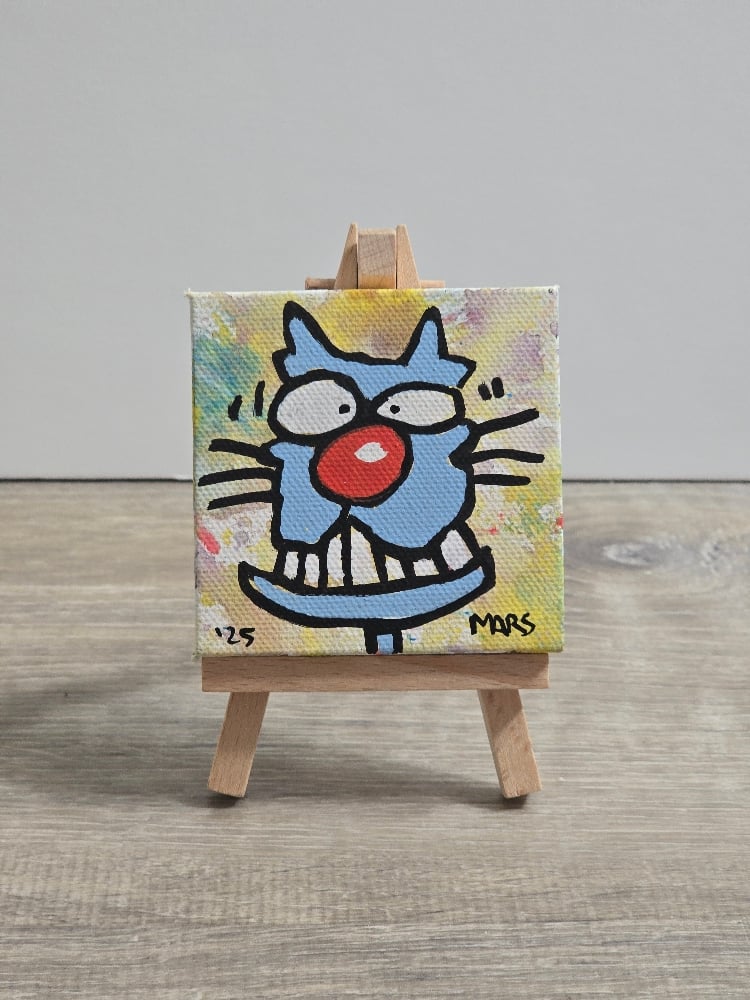 Original Art painted on canvas 2.5x2.5 Inches. Signed and dated. Comes with easel.