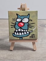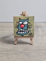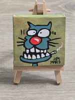 Original Art painted on canvas 2.5x2.5 Inches. Signed and dated. Comes with easel.