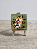 Original Art painted on canvas 2.5x2.5 Inches. Signed and dated. Comes with easel.