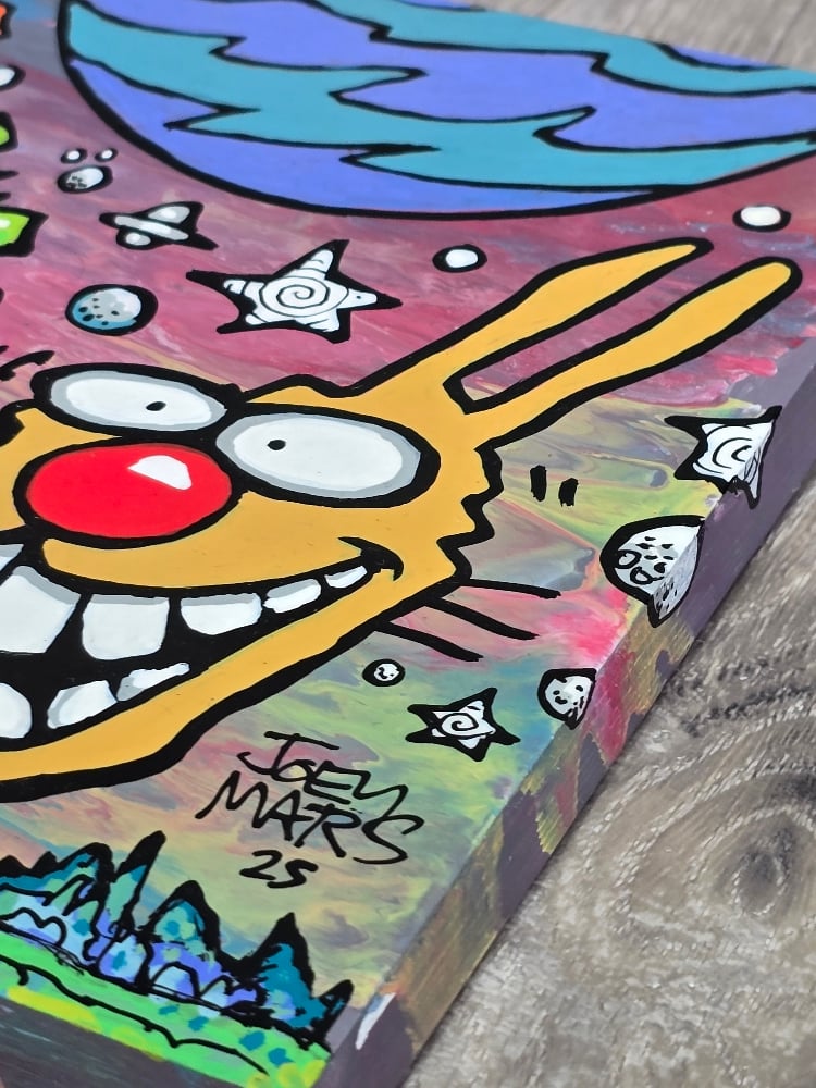 1/1 Original 8x8 Inch Joey Mars Painting. Acrylics on wood panel. Blast into space with this majestic swirling cosmic sky. Free shipping within the continental U.S.